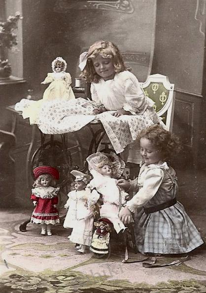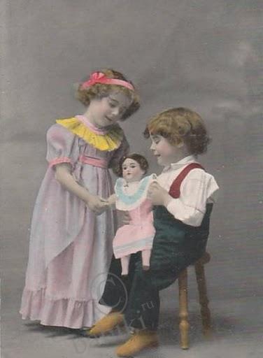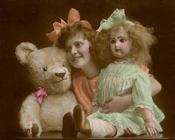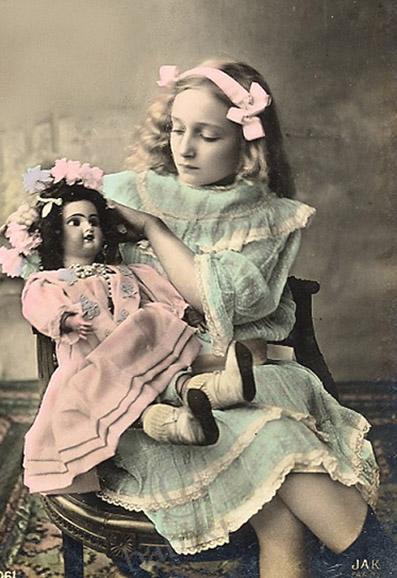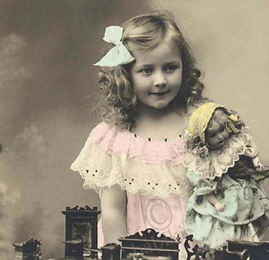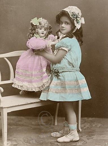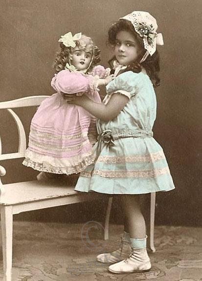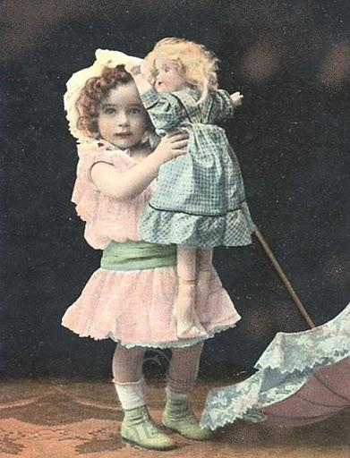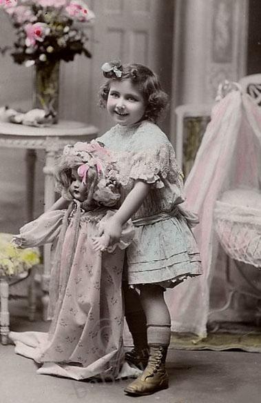 Нашла очень интересный набор исторических фотографий где дети с любимыми куклами