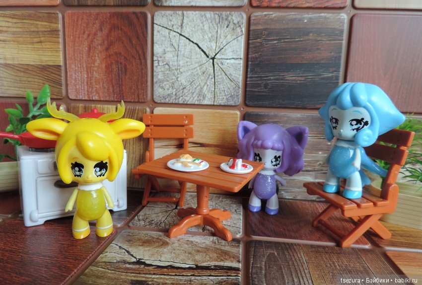 Наборы подходят, естественно, зверюшкам из Happy Family и Сильваничикам, хорошо смотрятся, практически соразмерно, с Enchantimals (в топике, на который я дала ссылку, можно как раз это увидеть, и некоторые аксессуары я и сейчас использовала из наборов с Enchantimals, совершенно нельзя определить, что они «не родные»), и весьма хороши для игры с куколками LOL.