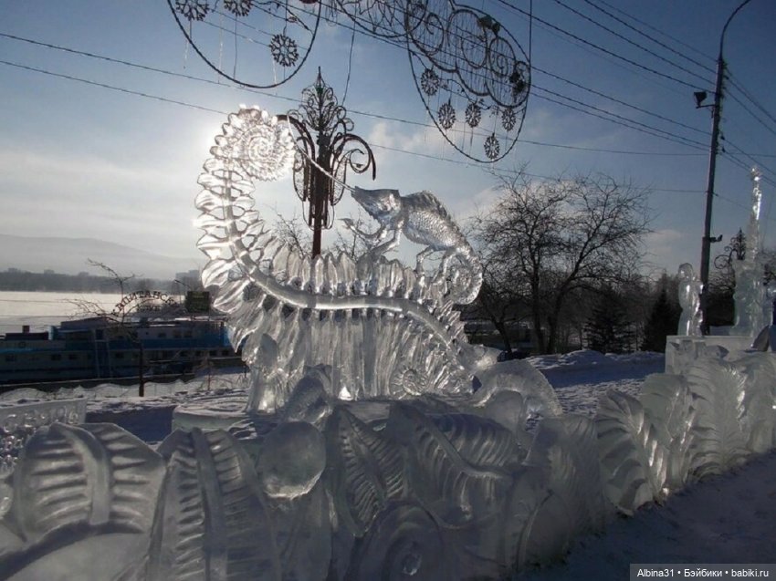 Уже которую зиму у нас конкурс «Волшебный лёд Сибири». Немного фотографий этого конкурса. Нынче не фотографировала авторов, замёрзли руки на ветру, не до жира :)))