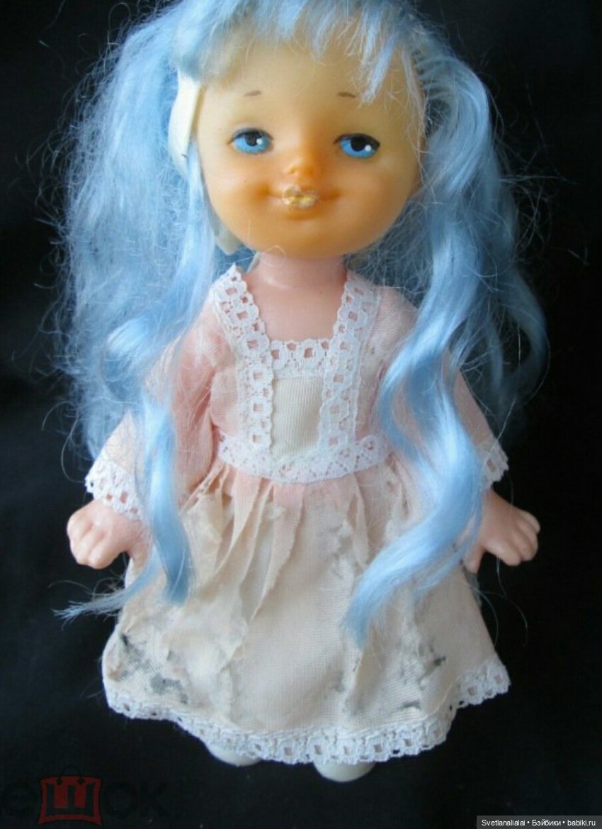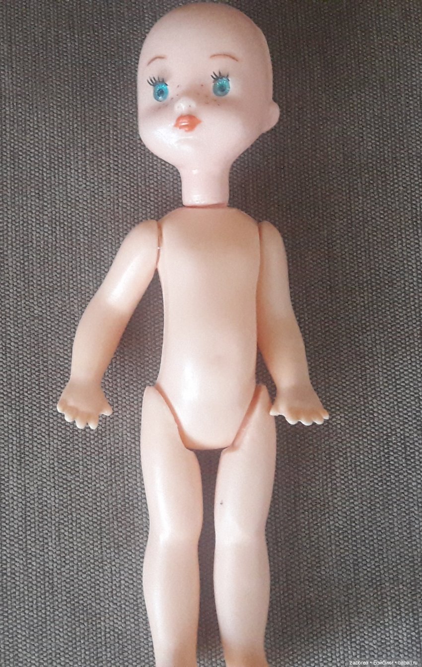Днепропетровская куколка, ростом 24 см. Голова — резина, всё остальное пластмасса.