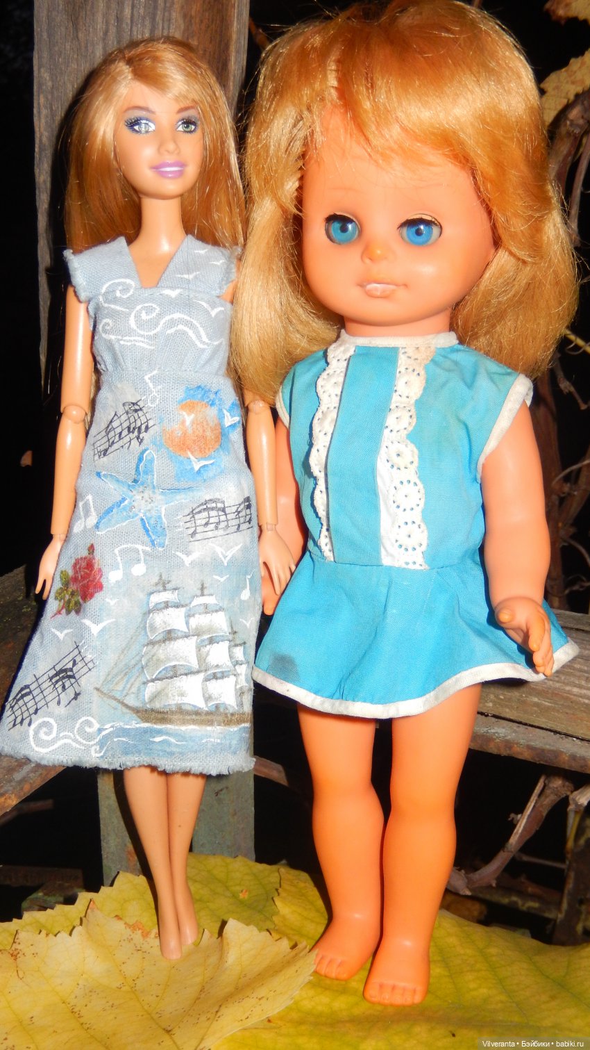 Вот. К сожалению, только со вспышкой в сумерках. Но всё основное видно, вроде бы. Нос и немного на щеке отмыть до конца не удалось, может еще удастся. Платье еще грязней чем на фото, тоже, увы не отстирывается, обуви нет.