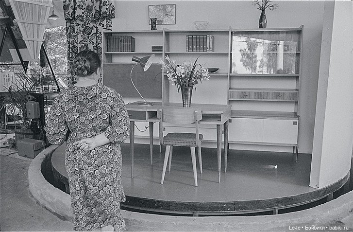 «Большое влияние оказала прошедшая в 1959 году при Хрущеве в парке «Сокольники» Американская выставка, где был представлен образец жилого дома, наполненный современной мебелью и бытовой техникой. Помимо прочего, была выставлена мебель Ээро Сааринена и четы Имз, которые участвовали также в дизайне павильонов выставки.