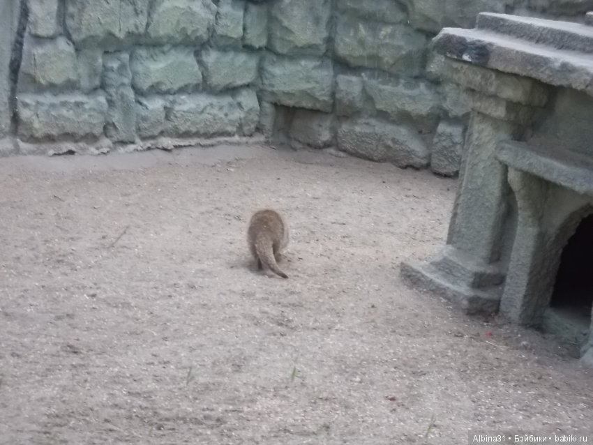 Скучающий зверёк забился в угол и сидел не шолохаясь там, видно поссорился со своей половинкой :) Ещё одна мордашка выглядывала из «домика», а может мне она показалась и это единственный житель вольера