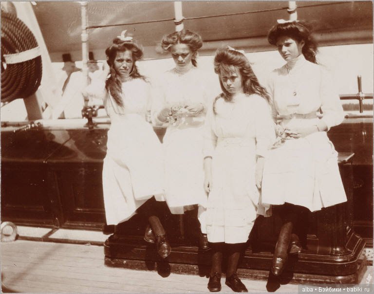 Что меня удивило на некоторых фото — это сочетание нежных летних белых платьев на княжнах с черными колготами и почти мужской черной обувью. Наверное мода была такая. Тем кто больше хочет узнать про царскую семью советую прочитать роман Валентина Пикуля «Нечистая сила». Это главное произведение в его творчестве — по словам самого писателя. Здесь и про великих княжон есть и про влияние Распутина на Романовых и многое другое.