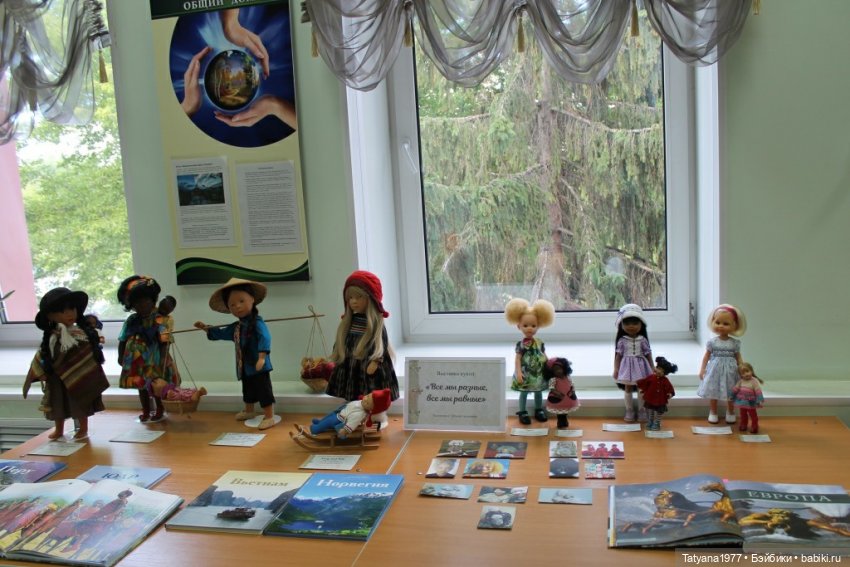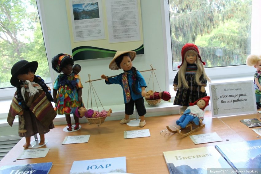 Недавно я у себя на работе, в нашей районной детской библиотеке, провела выставку-презентацию «Все мы разные, все мы равные!», посвященную толерантности. Я рассказывала детям о людях разных стран мира (Перу, Вьетнам, Норвегия и стран Африки), об их традициях, национальных костюмах, танцах, инструментах… А помогали мне в этом мероприятии куклы Сильвии Наттерер из серии «Мамы мира и их дети».