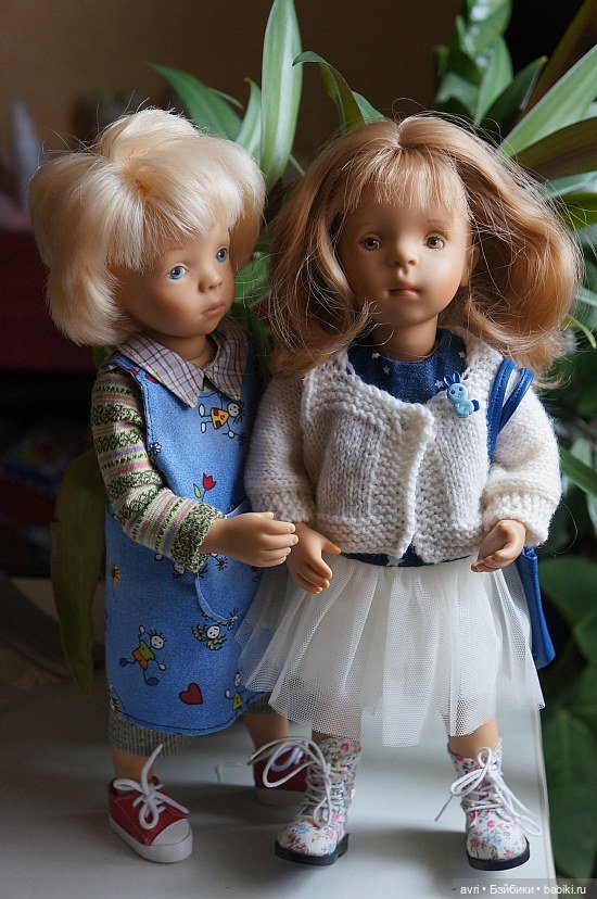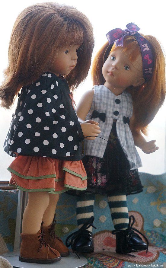 Блондинка в юбке и сапожках — это Бриджит, выпущенная компанией Zwergnase, а мулатка — это Луиза от Gotz.
