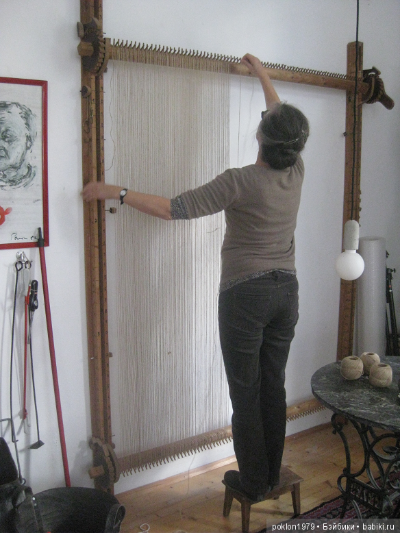 Сильвия ткет гобелен. Ткацкий станок изготовил для Сильвии ее муж: