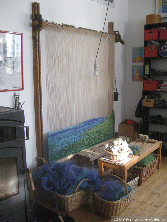 Оказывается она ткет гобелен! Вот это как называется! Она написала мне, что этот станок изготовил ей ее муж. А эти работы она творит на заказ для загородного дома. Вот фото: