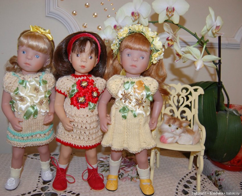 Я тоже очень люблю кукол Сильвии, всех! Но в моей коллекции в основном Минушки, так для меня большое значение — это рост. Я люблю вязать на кукол, поэтому в нашей куклосемье в основном куклы с ростом 35 см. Но мне нравятся любоваться всеми куклами Сильвии!
