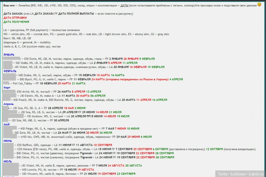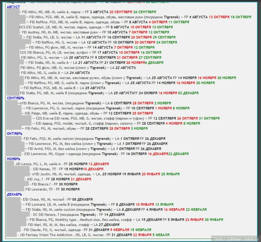 Вот для примера 2016 год. Чётко видно, что ожидание примерно месяц — до августа, когда впервые открыли линейку ФИД. Некоторые августовские куклы получены аж в декабре, но там рассрочка, понятное дело.