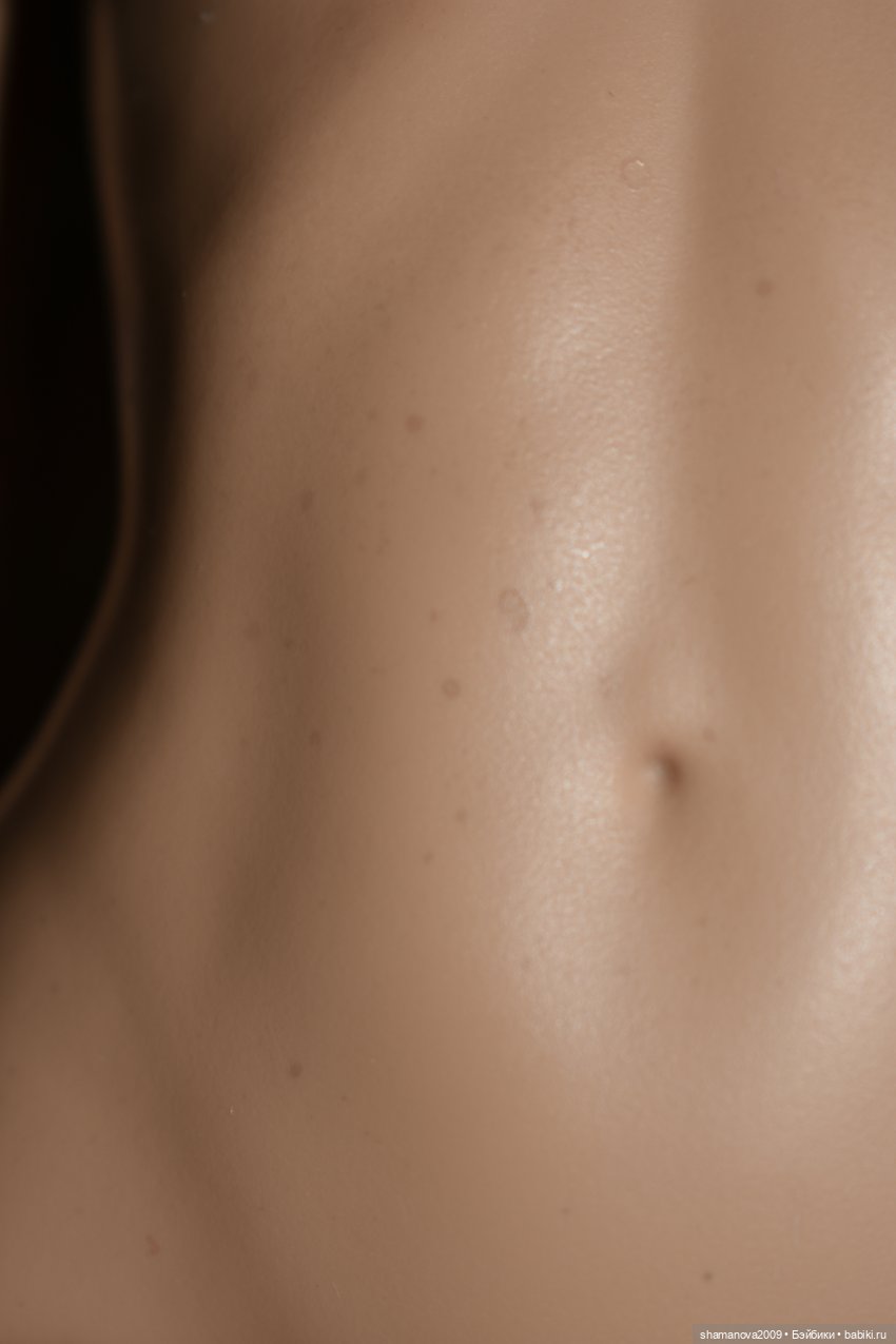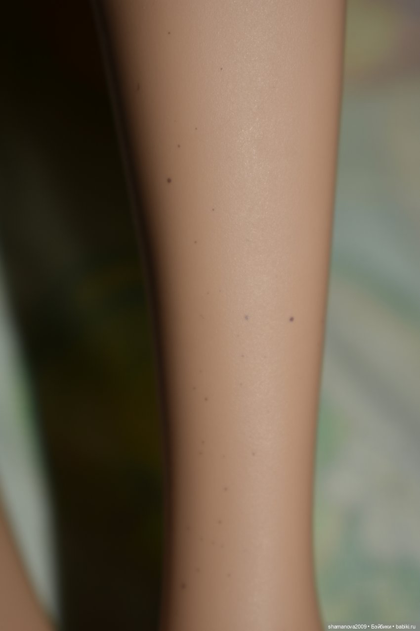 Я этих пятен и не видела, пока фотоаппарат в руки не взяла. Видела только на животе 2-3 штуки и на ногах по одной, хотела про них узнать. А сегодня фотала и сделала открытие, что у меня почти вся кукла спереди покрыта пятнами.
