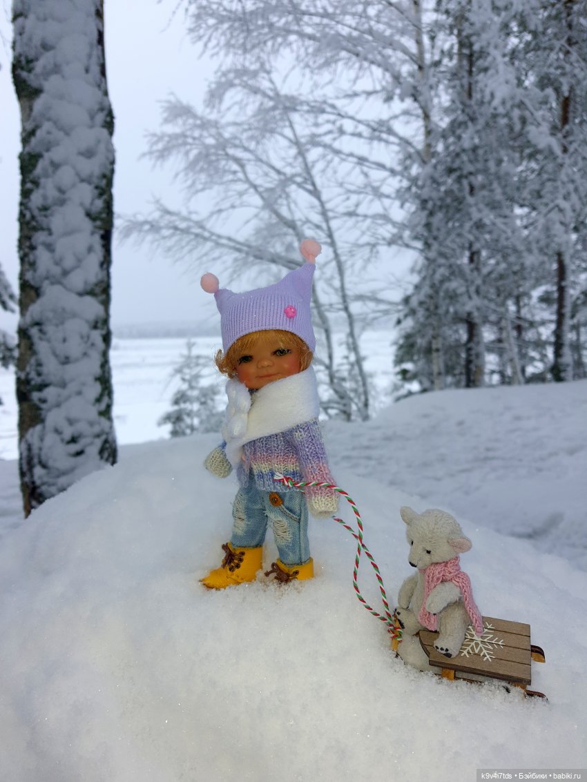 Твоя пельмешка довольна, с саночками вышла на снежок!
