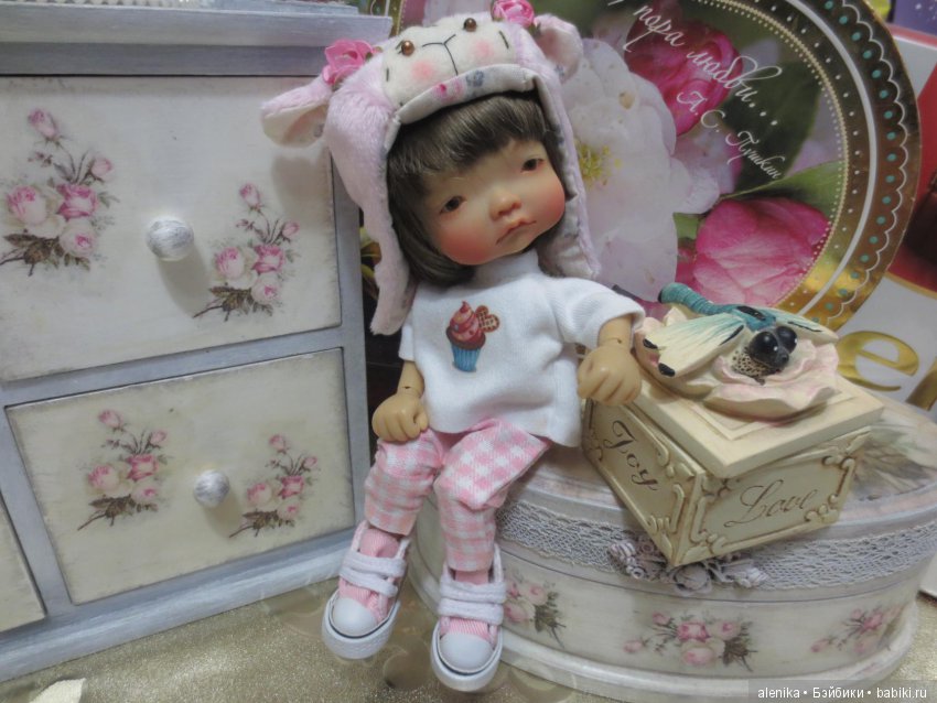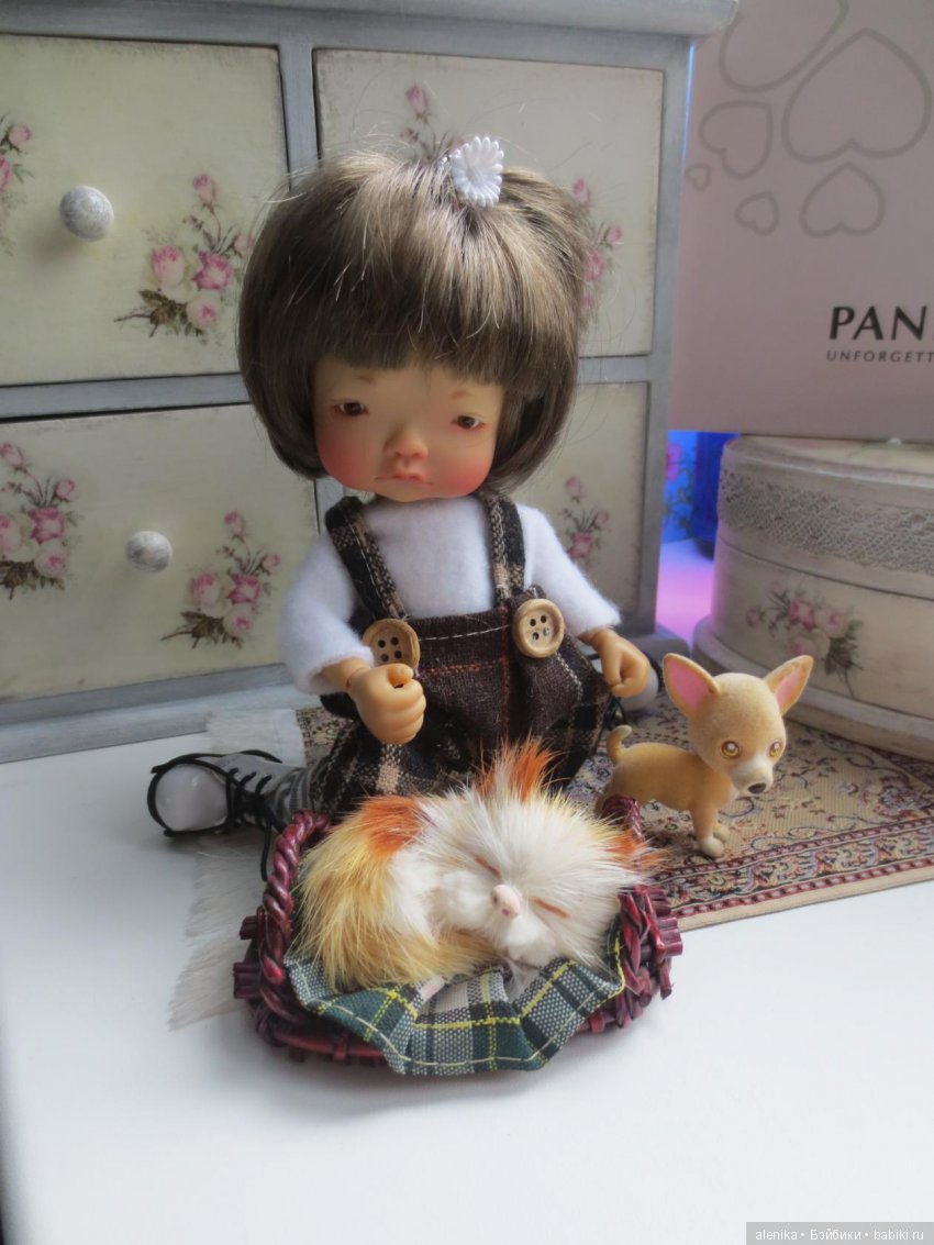 Я была совершенно не готова к ее появлению, покупка была спонтанной, поэтому первое время девочка сидела на полочке в комбинезоне, в котором приехала и ждала возможности показаться в полном образе.