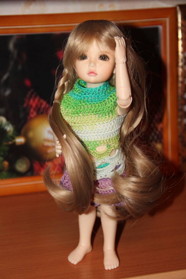 И тут меня спросили в личке про паричок белый, подходит ли он ирреалику? А так как кроме Дрюши мне примерить не на кого, я полезла за ней в коробку, примерила паричок и на меня посмотрела такая плюшечка милая!
