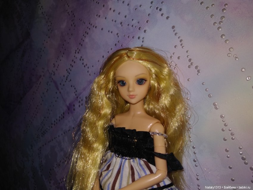 У них вставные стеклянные глаза и прихваченные клеем синтетические парички (4 дюйма), которые можно менять. Параметры тела позволяют обмениваться одеждой с Pullip и подобными им куклами.