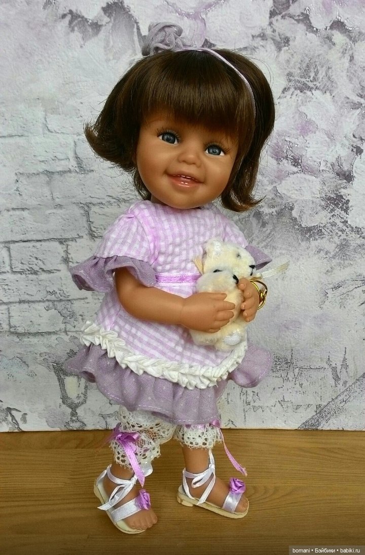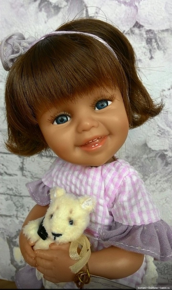 Волосы — паричок, глазки вставные, реснички приклеенные.