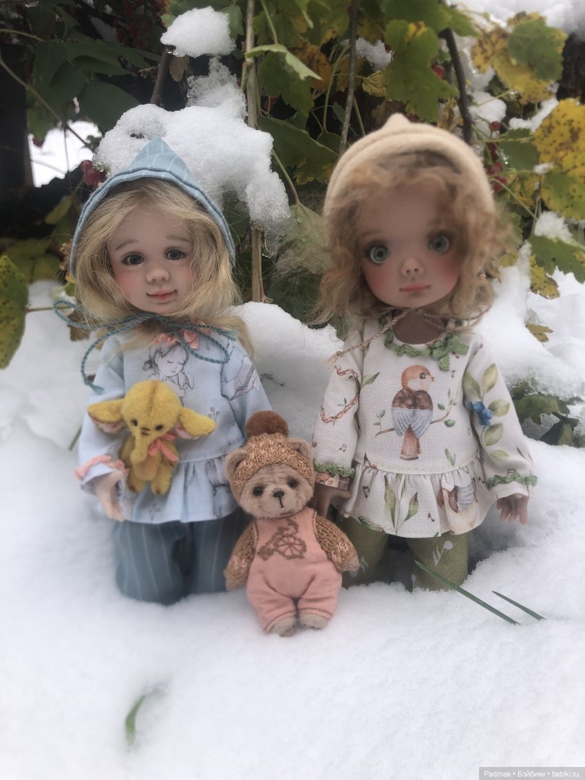 Осенние фото девочек Холала. Есть однотипные фото. Чудесные комбинезоны и шапочки anis60 . Обувь от blythemoda . Милейший четвероногий друг у девочек от Walentina . Спасибо мастерам♥️