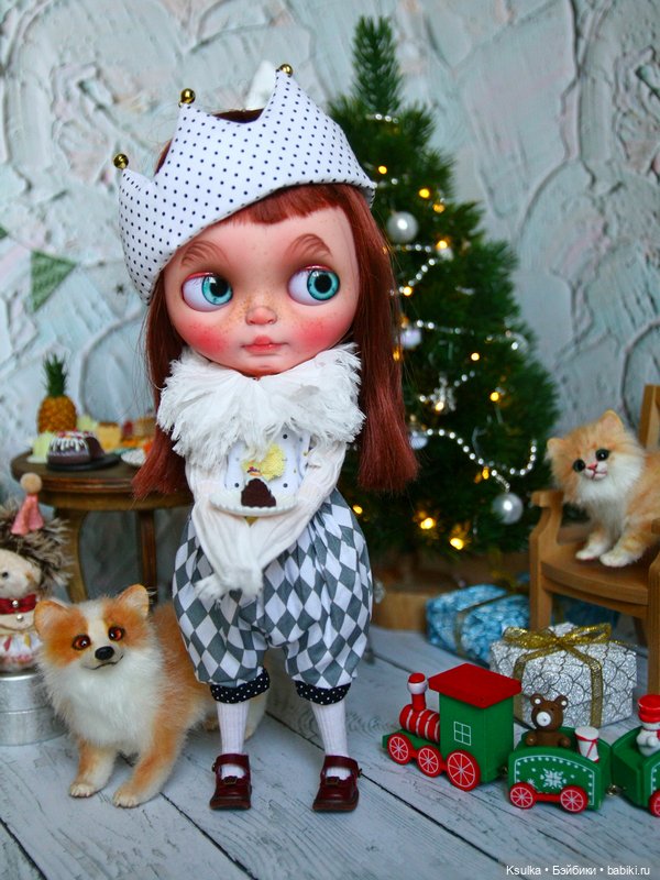 На выставке 5 января купила ей костюмчик забавный. Она из серии Цирк, думаю, вполне подойдет для такой тематики.