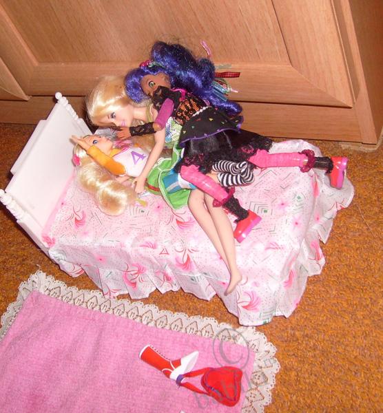 Карина уже давно ничего не боялась.Она пришла просто в дикий восторг от всей ситуации и тем более от кровати!!! Она со всего размаху прыгнула на постель!!!