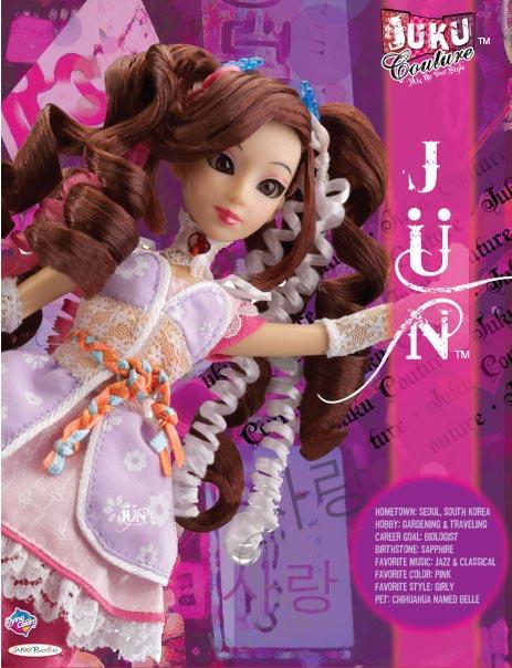 Название серии этих очаровательных куколок Juku Couture (куклы Джуку Кутюр) в переложении на русский можно обозначить как «Мода от Джуку». Одна из представительниц этого кукольного семейства (всего в серии 4 куклы) – симпатичная коллекционная брюнетка Джун (Jun) или Джанна.