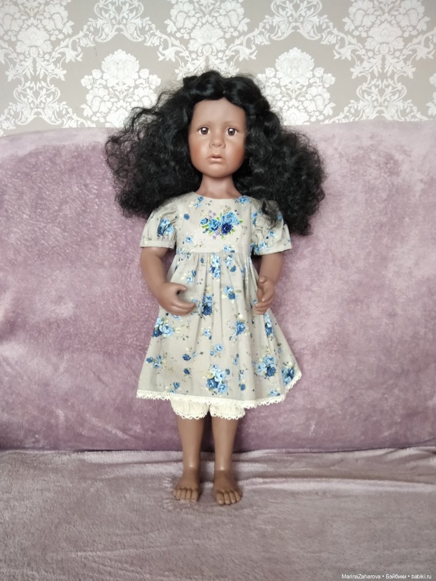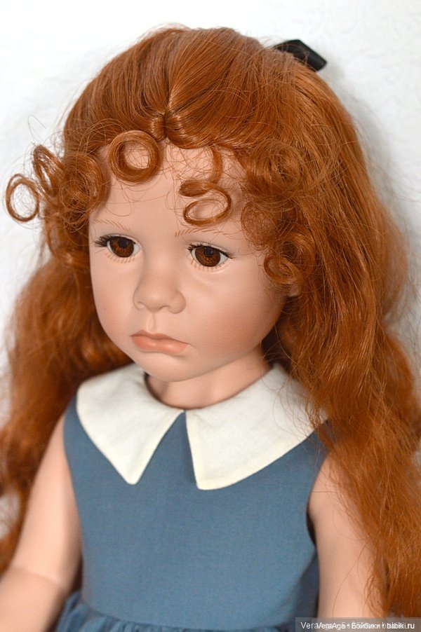 8. А эта милаха с пухленькими щечками приехала без документов. Вероятно «клубный» вариант. Обычно куколки с таким молдом на шарнирном теле, а у нее как у «крюгерок» 42 см.