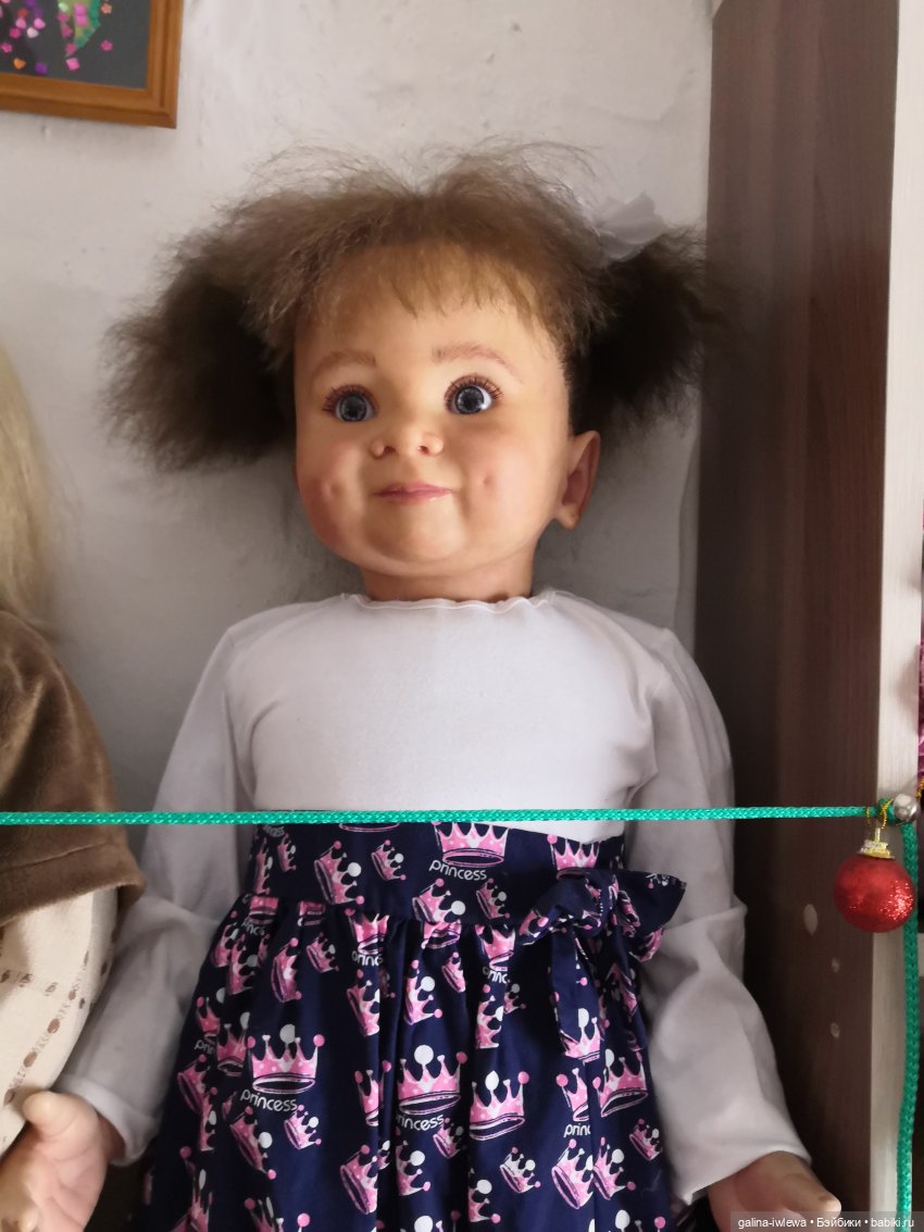А эта девочка Armful of love приехала в неродном платьице, я ее переодела — она очень хорошенькая, с такими синими-синими глазами, с очень живым личиком, как у Дрессировщицы и Кукольного театра.