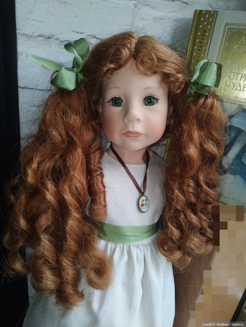 Ее паричок самый длинный из всех, которые я видела, кудряшки лежат аж на полу. Красные туфельки, бантик и сердечко подобрала сама, мне показалось, что девочке пойдет такой яркий акцент.