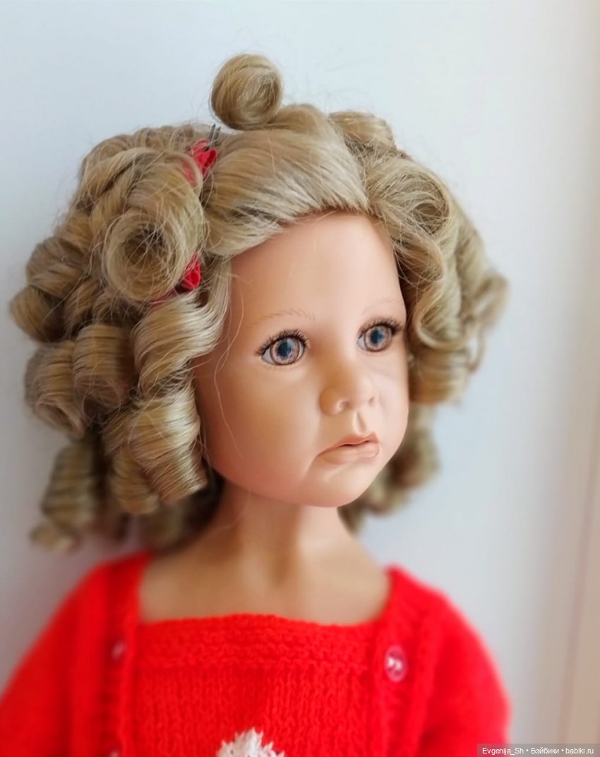 «Завитушка» это дань уважения Julie Good Kruger. Ее красный вязаный костюмчик и круглый чемоданчик создают прекрасный ретро образ для нашей «милой Эмили Джейн». Ее волосы уложены в прическу как у Ширли! 22 дюйма, винил, лимит в 300 штук.