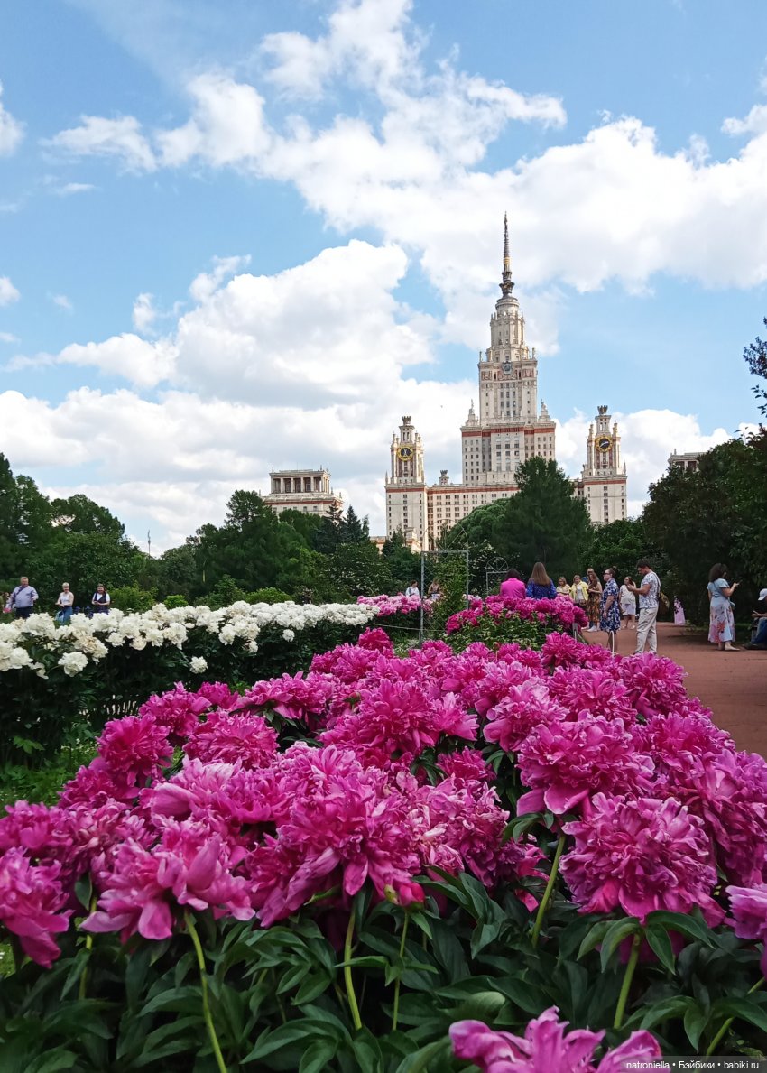 Гулять собирались вообще-то не в главном ботсаду, а в том, что принадлежит МГУ (там сейчас пионы и ирисы шикарные), но пока платья нагладили (куклам, конечно, а не себе
