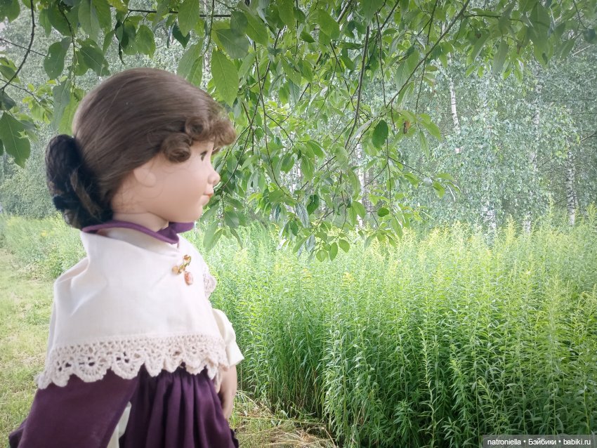 Приехала она ко мне в родном аутфите с плюшевыми животными для кукольного театра. Я завязала ей шелковые бантики и переодела в платье.
