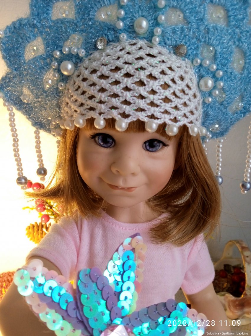 Может потому, что моя соседка, девочка 9-ти лет, Ксюша, один в один эта кукла! И так же улыбается, стеснительно… только волосы светлые. Поэтому, когда нажала кнопку «купить» уже знала, что она будет Ксюшей...😄