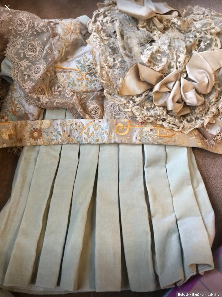 Теперь про одежду: сказка. Я вообще не знаю, как они это делали очень трудоемко все в мелком плиссе, рюшках и сборках. На кукле довольно простое белье, шикарное платье и боннет в очень зорошей сохранности, хб носочки. — Вот им досталось Туфли из шелкового атласа.