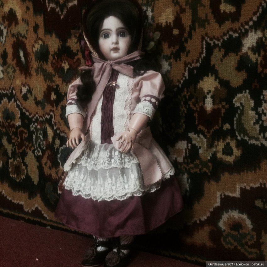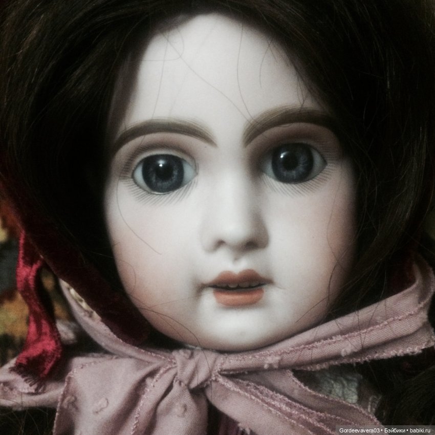 Здравствуйте, уважаемые коллеги по хобби. На нашем сайте я зарегистрировалась год назад, когда увидела эту куколку. Жюмо, молд9, темноволосая и голубоглазая девочка 56 см ростом. Дело в том, что в детстве я часто видела сон, в котором у меня была именно такая кукла, с длинными темными волосами, синими глазами и маленькими белыми зубками. Возможно увидала у кого то на открытке или картине и отложилось в памяти. А позже, читая журнал деагостини «дамы эпохи» узнала свою детскую несбыточную мечту. Куклы Жюмо, какие глаза, какие выразительные личики! В общем увидев тут, на сайте, воплощение своей детской мечты, шансов пройти мимо у меня уже не было.