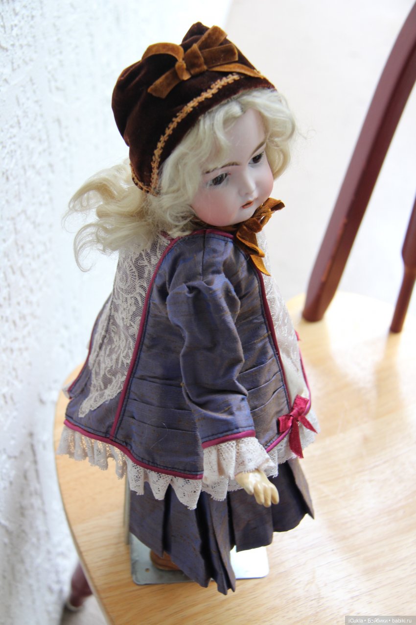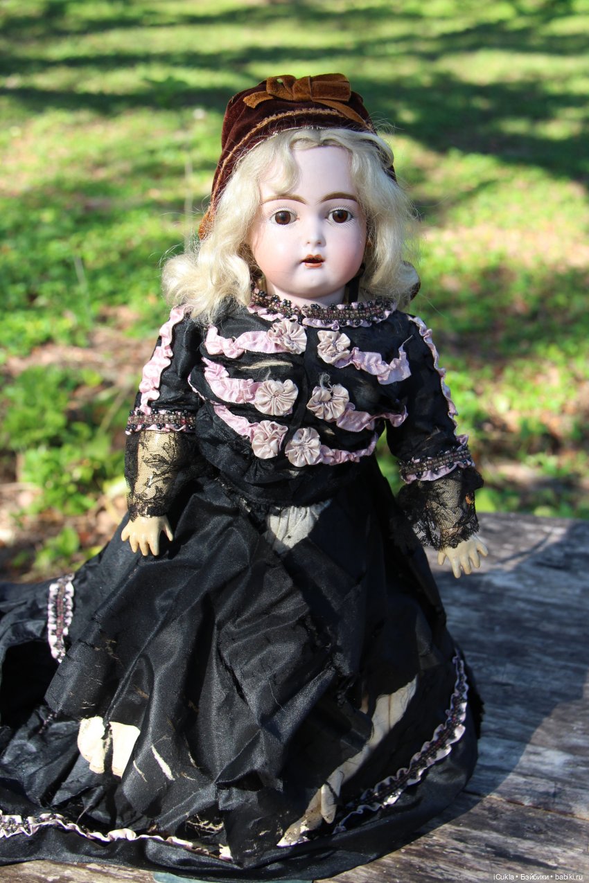 Всем привет! Сегодня переоделась малышка Каммер 192 ранняя, которую я купила в своем городе в доме, где бабушка страдает деменцией и ее коллекция распродается дочерью.У куколки было черное шелковое платье, рассыпавшееся прямо на столе у хозяйки.Но зато осталось прекрасное антикварное белье и парик!
