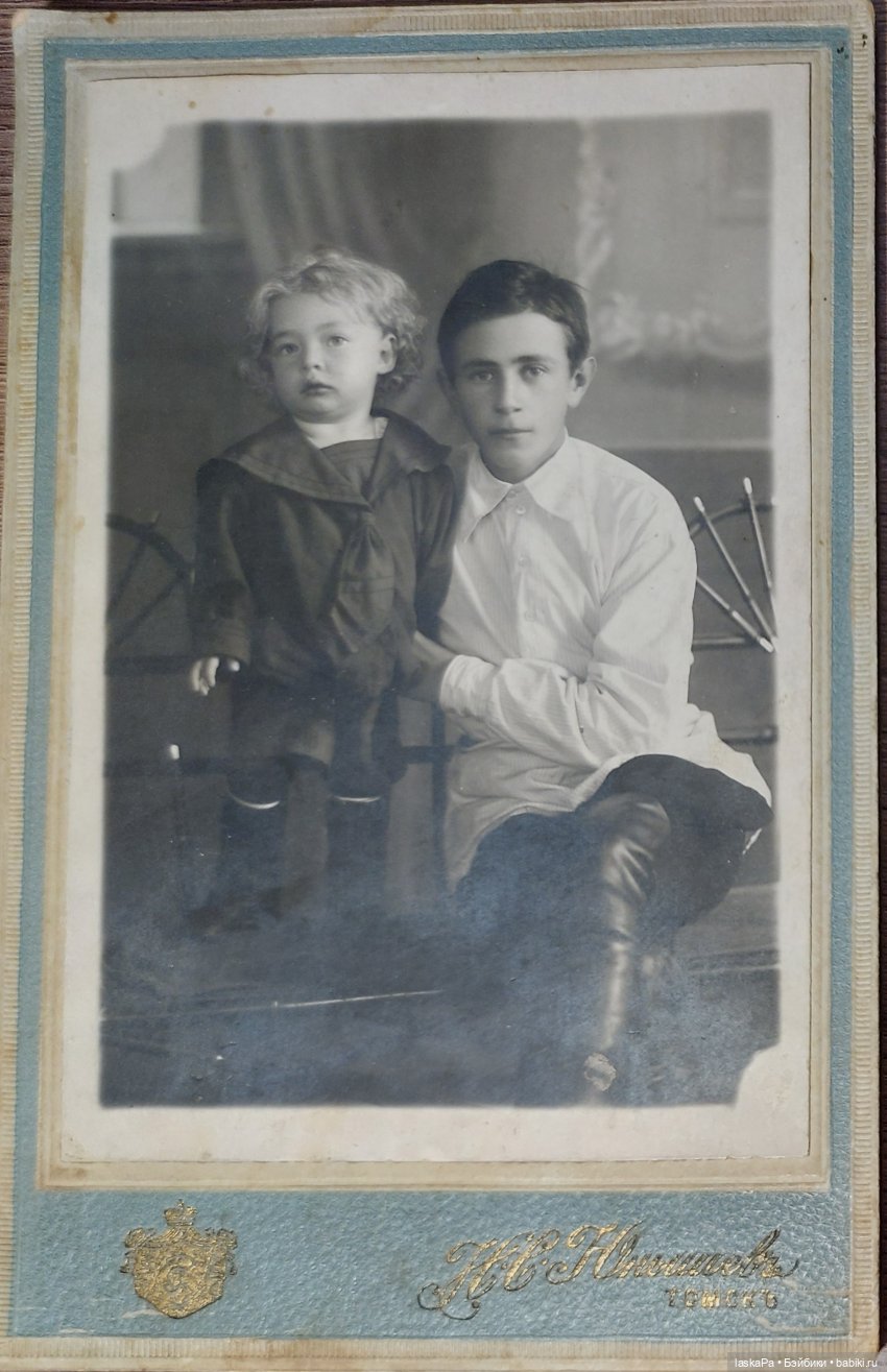 Благодаря Вам придала вектор своей мыслительной деятельности: пыталась разгадать время создания фото. Шмыгала носом, шмыгала и о! Эврика!!! Твердый знак упразднили в 1918 году, значит, фото конца 19 — начала 20 века. Также интернет подсказал, что одежда типична для 1890-х -1910-х годов. Домыслила для себя, что старший мальчик одет скромнее, видимо, отдан в город в подмастерья. Семья прикупила новый костюм для младшего-куколки))).
