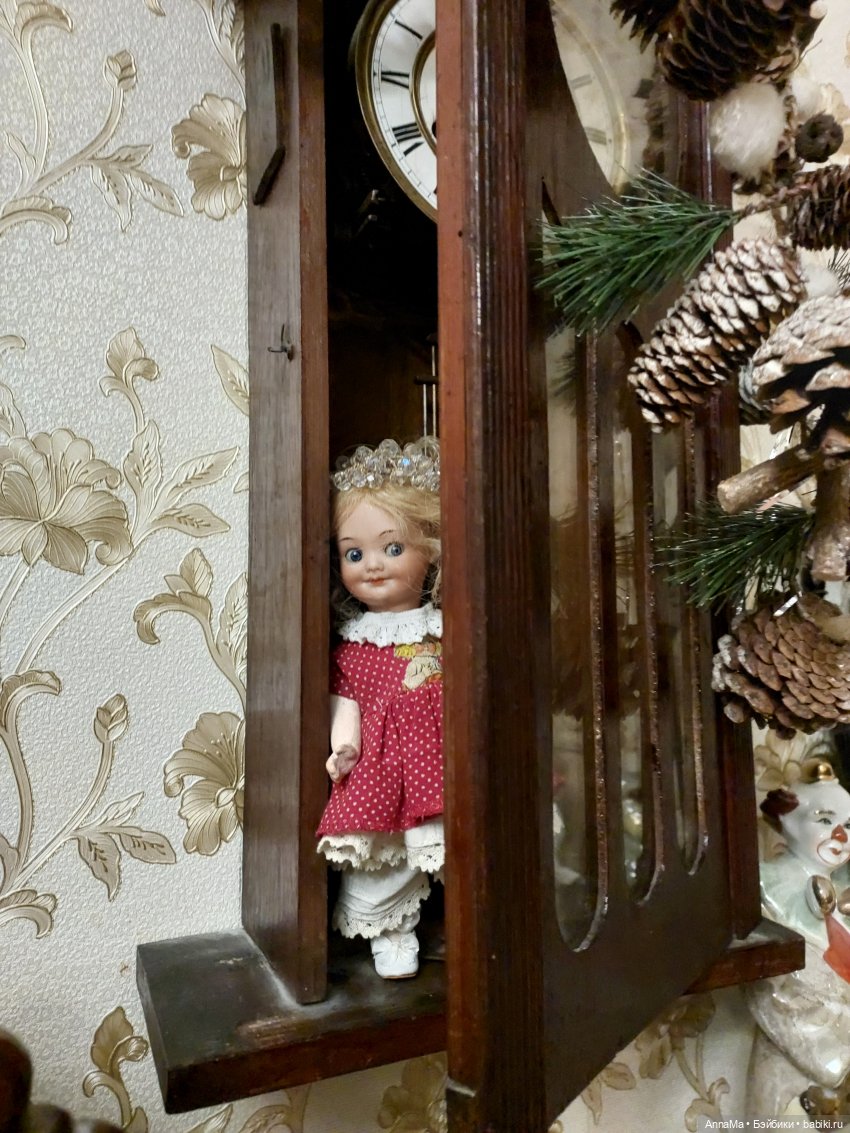 Куча кукол, многим нужна реставрация, многие голые и босые. Никакой комнаты, кроме часов. Слава Богу, хоть часы муж подарил. Часы офигенные! Густав Беккер, 1900 год. С боем, очень красивые.