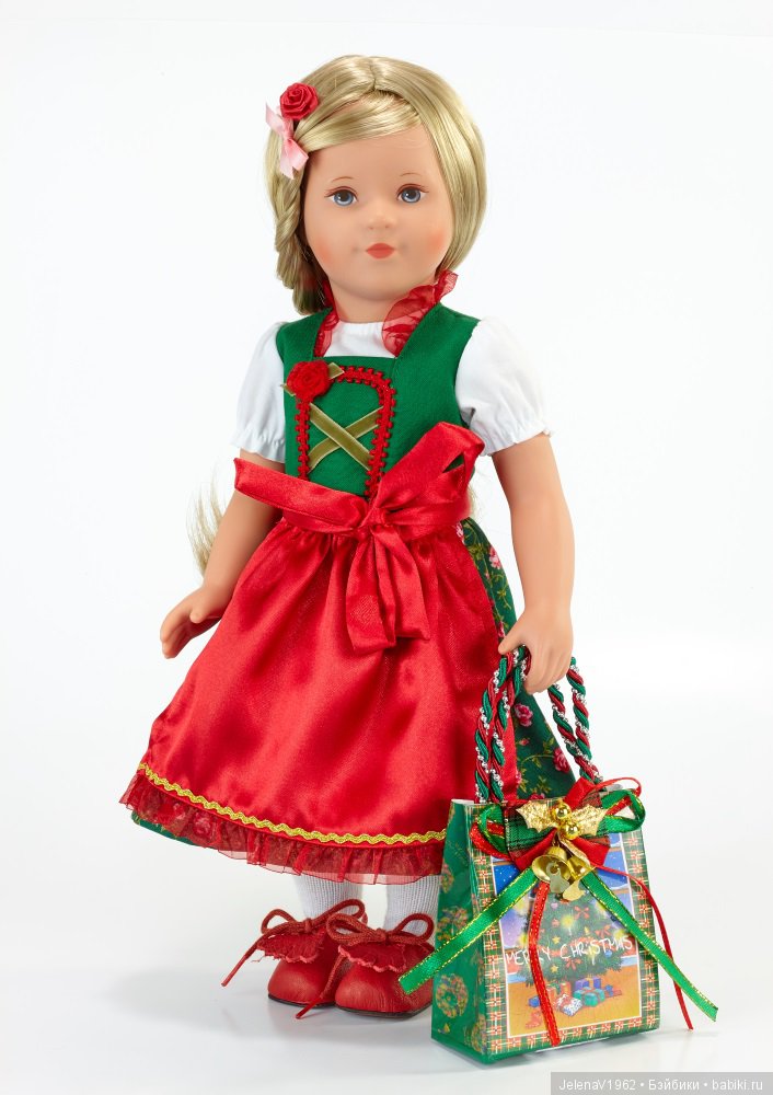 Все куколки сейчас готовятся к праздникам. Одевают лучшие наряды, у кого есть)) Вот и моя блондинка Тони вспомнила про свой Weihnacht аутфит, выпущенный к 100-летию фабрики Кате Крузе. Аутфит этот чудесный, многослойный — рубашка и нижняя юбка из хлопка, бархатный вышитый топ, юбка и передник из тафты с рисунком.