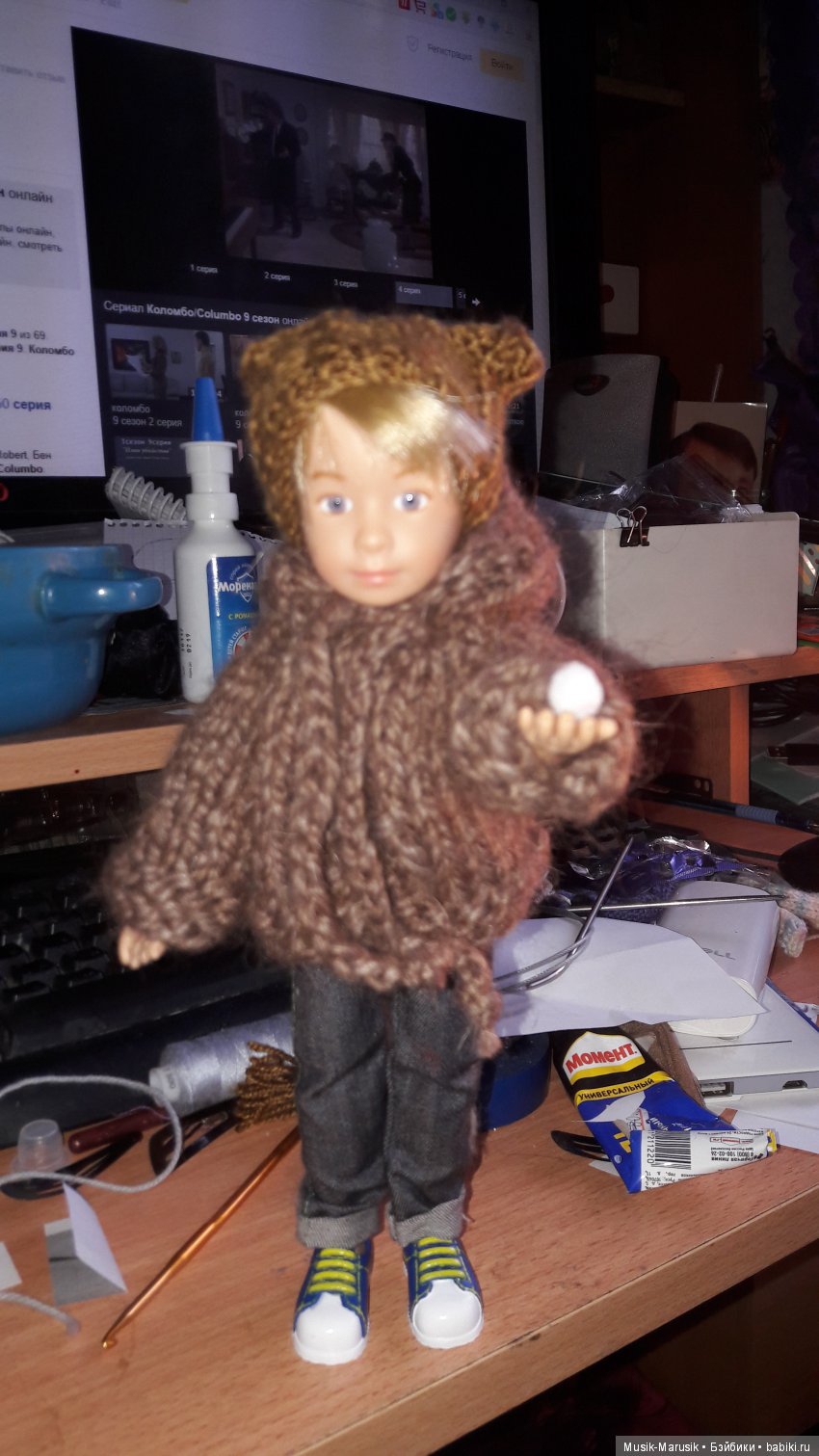 Долго-долго сидела коллекционная кукла Нинка дома… Как вернулись с дачи — никаких обновок, никаких фотосессий. Приехала старшая сестричка, понятно, все внимание ей, Нинка терпеливо ждала. Но вчера с морозцем появилось первое зимнее солнышко. Нинка выглянула в окно, топнула ножкой в мокасине и сказала, что хватит. Ей срочно нужна зимняя одежда и срочно нужно туда, на улицу, где зима. Весь вчерашний день готовился зимний наряд. Когда все было готово, Нинка потребовала завтра же взять ее с собой. И хоть без фотосессий, хоть чуть-чуть, а погулять.