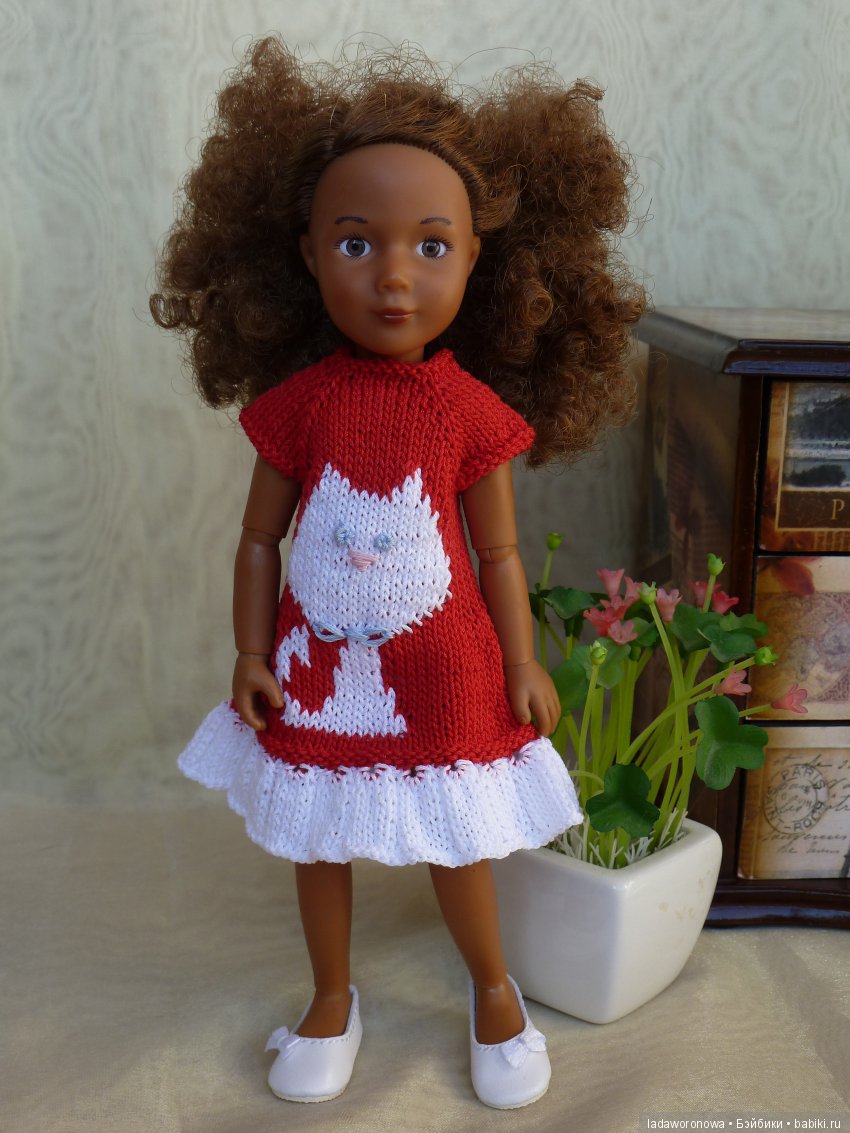 Почему вреднючку, спросите вы, а потому что девочка оказалась с характером, да еще с каким. Долго-долго мы с ней не могли договориться, во что ее одеть. Я много раз начинала ей вязать одежду, но каждый раз заканчивался провалом и полным роспуском вязаных начинаний. Пробовала все, даже хотела одеть ее в современную одежку, но тут начинались капризы. Столько вздохов и охов у меня еще ни разу не было ни с одной куклой. Но все-таки мы пришли к консенсусу и что-то навязали. Всем заглянувшим спасибо! Встречайте наш «измученный» в бесконечных спорах наряд.