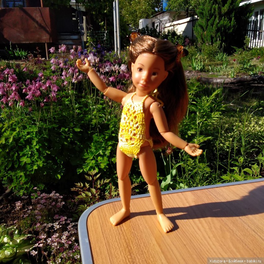 Всем привет! Недавно у меня поселилась чудесная крузелиночка Вера! Сначала она предстала передо мной как настоящий сорванец, но мы полюбовались на нарядных подружек и Вера решила тоже быть девочкой-девочкой! Естественно мы начали пополнять гардероб нарядами, но сегодня хотим похвастаться именно купальником! Именно за него мне было браться страшнее всего, но вроде получилось не плохо и Вера кажется тоже довольна) А ещё у Веры появился маленький друг, точнее подруга-щенок Тишка) Тишка девочка, а почему такое имя… да и сама незнаю))) Вобщем приходите к нам в гости покушать клубнички, поиграть с Тишкой и помодничать!!!