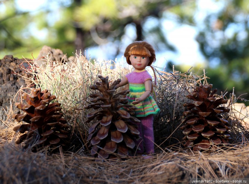 В лесу пауков ещё нет, змей к счастью не встретили. Одежду для Клои нарыли у дочкиных кукол, ботинки от Кена военного))
