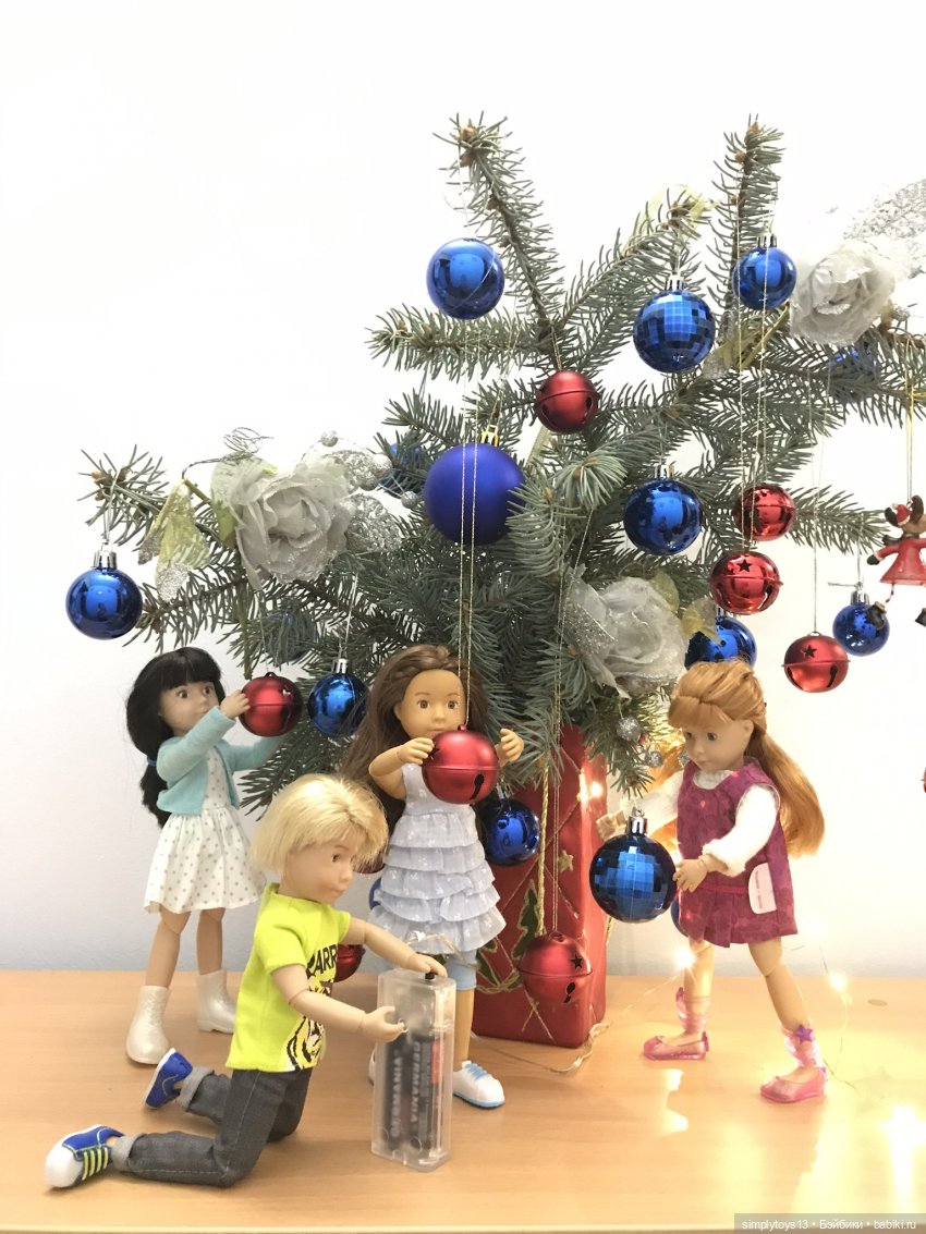 Я решила устроить им фотосессию у ёлочки. Ребята с удовольствием поиграли и порезвились.