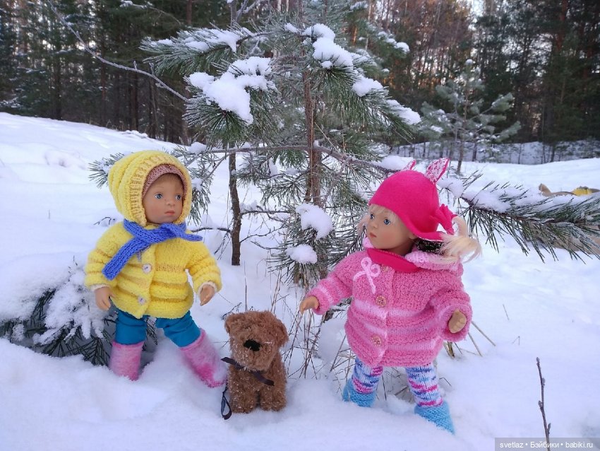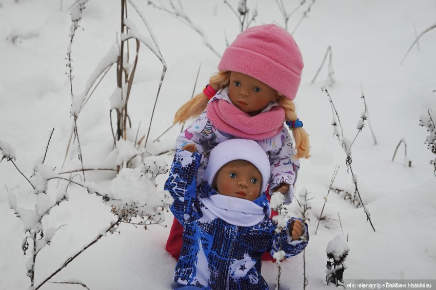Костюм был назван осенне-весенним, но там же шубка и колготы, а значит можно его надеть и на зимнюю прогулку. Так мы и поступили. Выбор пал на озорную, рыжую Лину. :-) Вот она, готова и ожидает выхода.