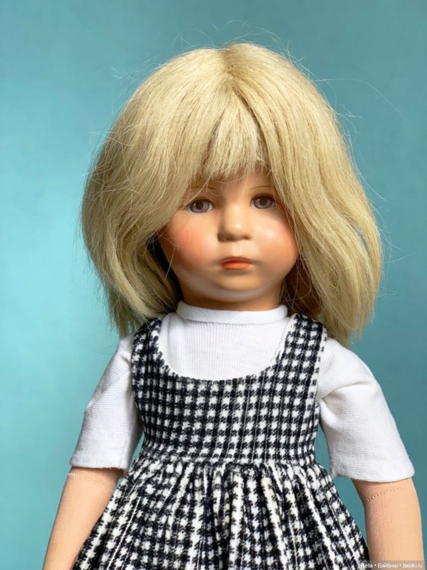 Я тоже очень долго засматривалась на винтажных К. Крузе и этой весной всё таки купила Лале, 1961 года. Рост Lale 47 cм, тело набито оленьей шерстью, парик из натуральныйх волос, модель XII Hampelchen. Прототип этой куклы создал зять К. Крузе русский художник Игорь Якимов. Поэтому среди экспертов эта кукла называется «47 H Jakimow». Именно в таком виде её выпускали до 78 года. Но с 61 — 78 год уже с искусствоенными паричками.