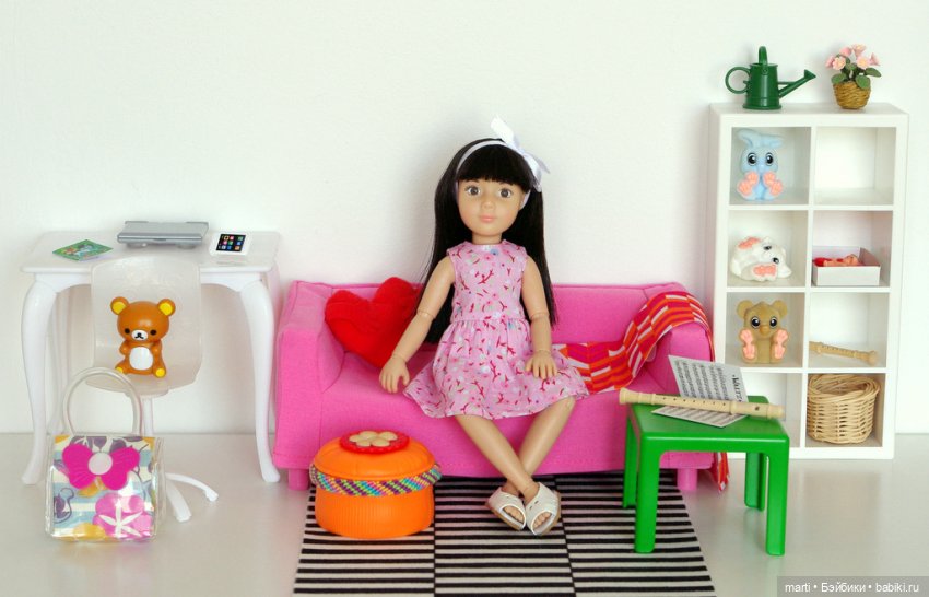 Но в выпусках часто попадаются куклы с неотцентрованными зрачками глаз. А самой их поправить тяжеловато. Также разного цвета пластик на ногах. Трясущаяся голова. Очень скрипучие шарниры. И сидят куклы некрасиво, широко раставив ноги.