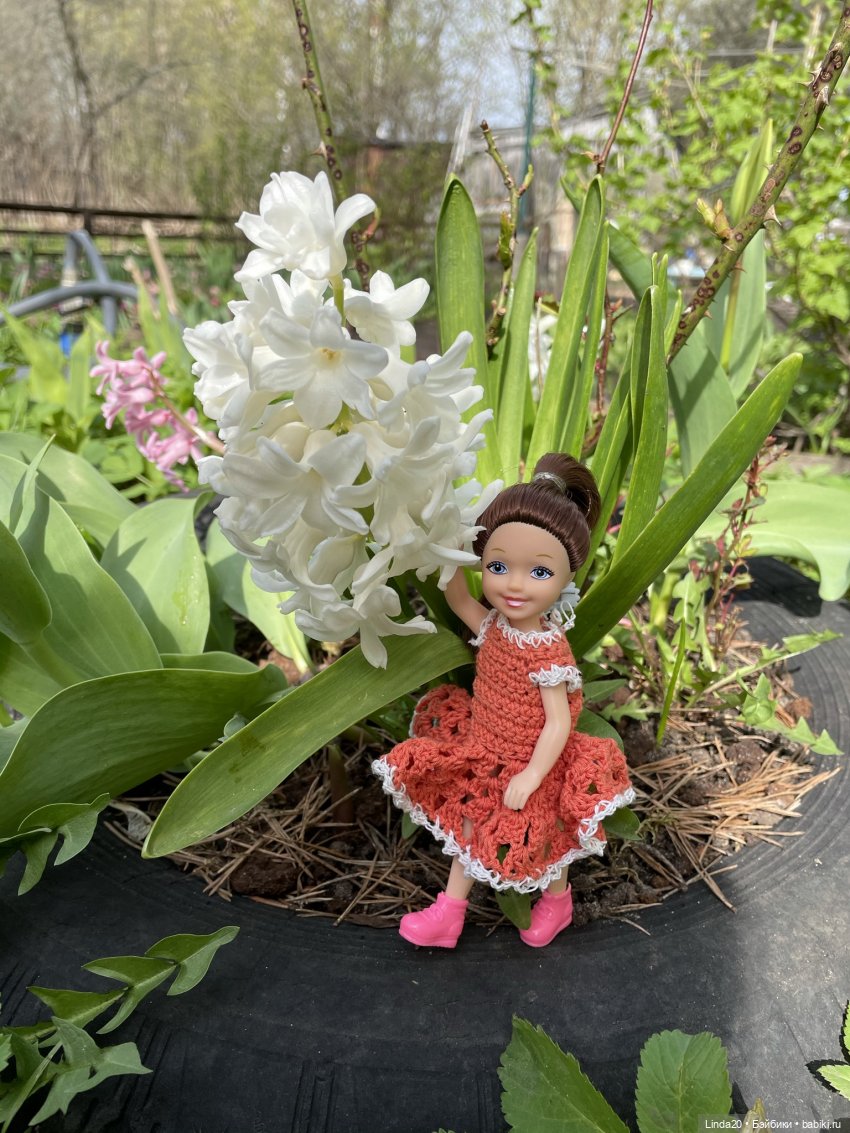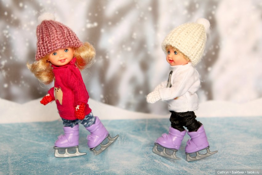 в платьице мини-Аниматорки Ани. Ань в доме столько, что все у них таскают одежду и обувку, они уже привыкли, я бы тоже ныкала, если бы по размеру подходила))Зефирка-блондиночка Келли-фигуристка Олимпийских Игр 2002. Ко мне прикатилась голенькая, поэтому и стала зефиркой в вязаном комбезике))