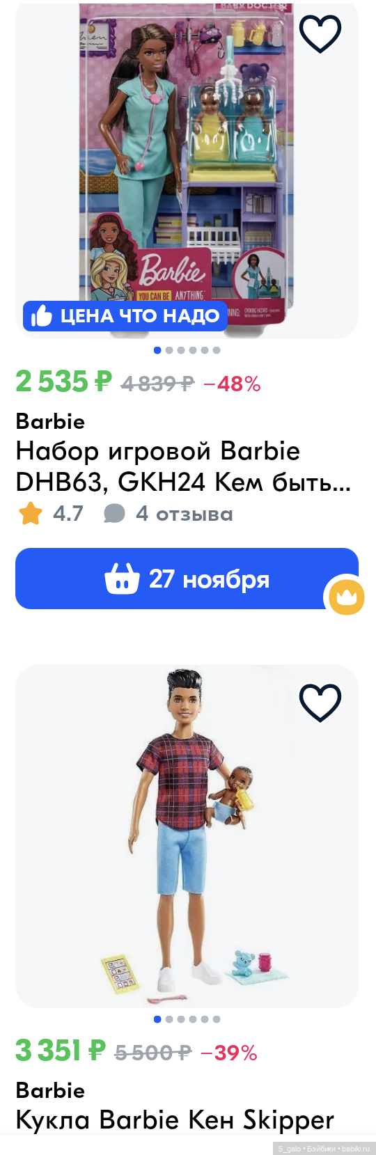 Всех приветствую☺️ Возникло желание купить нескольких пупсиков младенцев Барби, разных. Где вы их покупали? В основном они в наборах, а у меня ко взрослым Барби нет интереса. Хочется новеньких, в упаковке. Но и набор готова купить… но Барби тогда надо продавать… Вдруг кто то знает, где их можно купить в Москве? Может у вас в магазине они есть и я бы подьехала