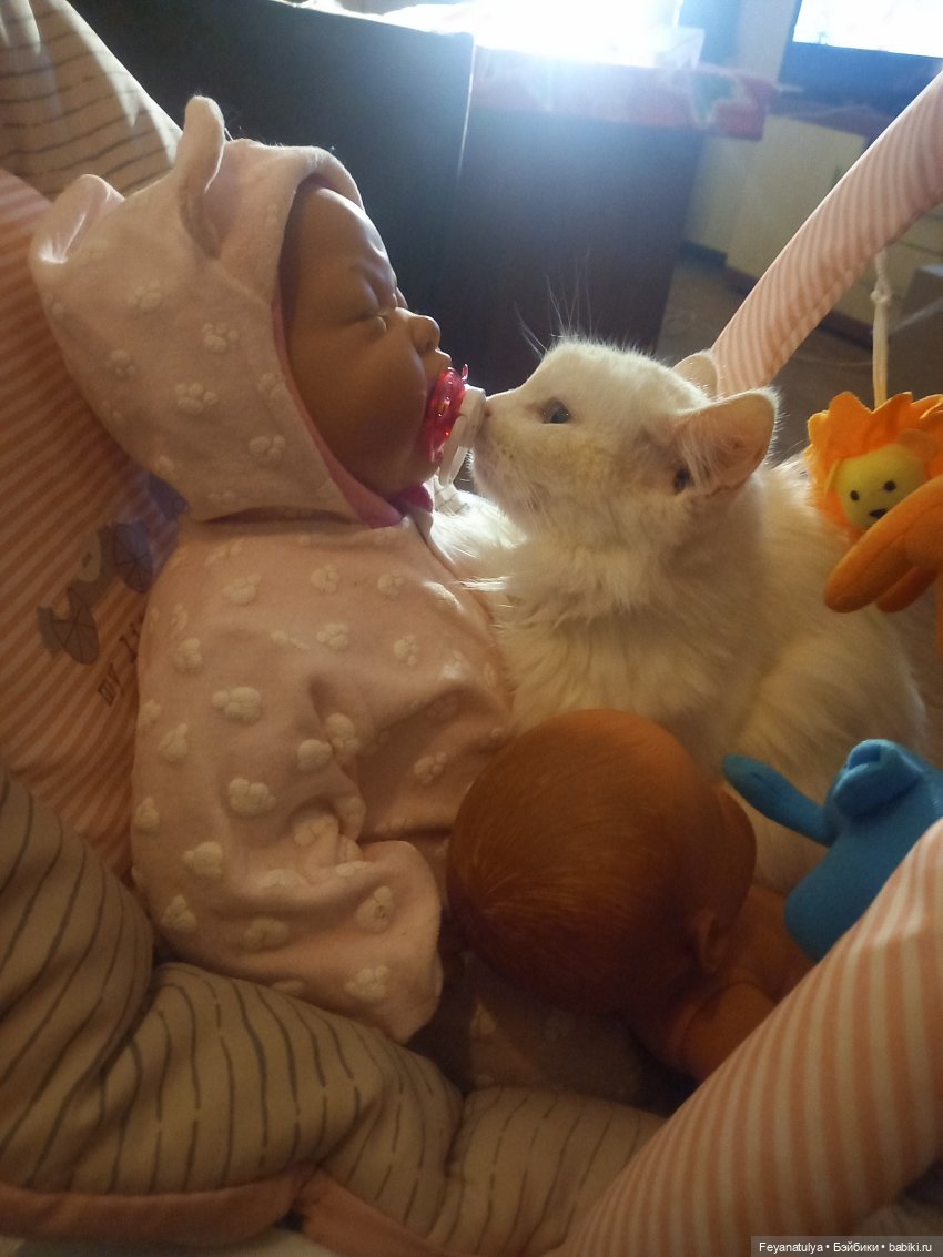 Фото очень трогательное! Такой классный котик и куколка чудесная!)