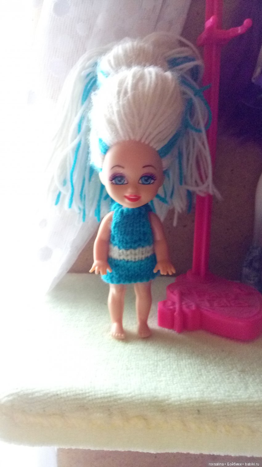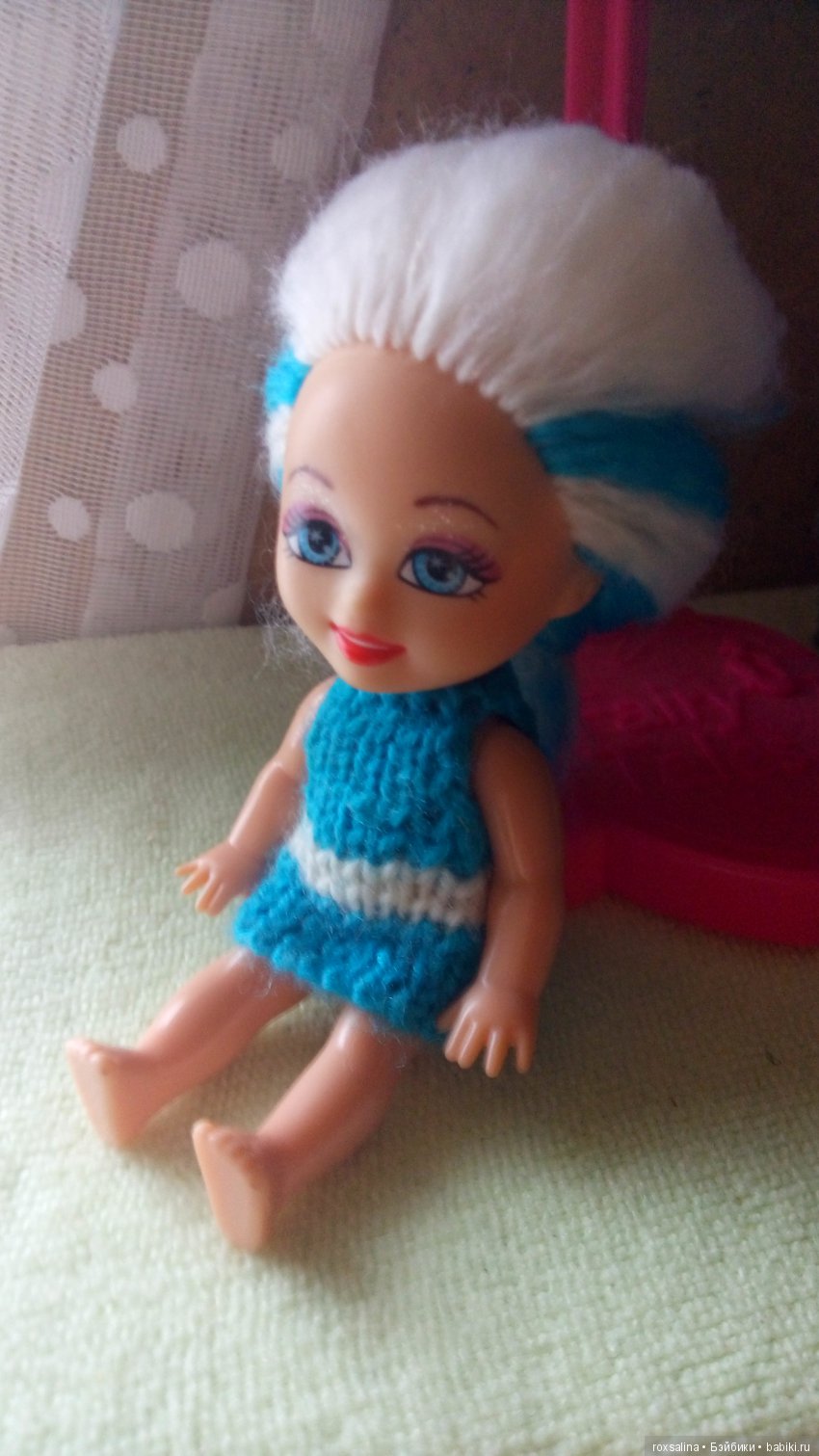 Сами, наверное, знаете как трудно бывает найти настоящую Челси от Mattel в своём городе, а так охота подержать эту девочку в своих руках и не только. Охота поселить её у себя. Наряжать, баловать. В общем шить и вязать на неё всякие наряды. Но в нашем городе их просто нет, а заказывать крошку через интернет выходит накладно. Так вот, что хочу сказать, на выручку мне пришла её китайская копия за совершенно смешную цену, и я не прошла мимо и прикупила её для себя. Вот она — китайская Челси.