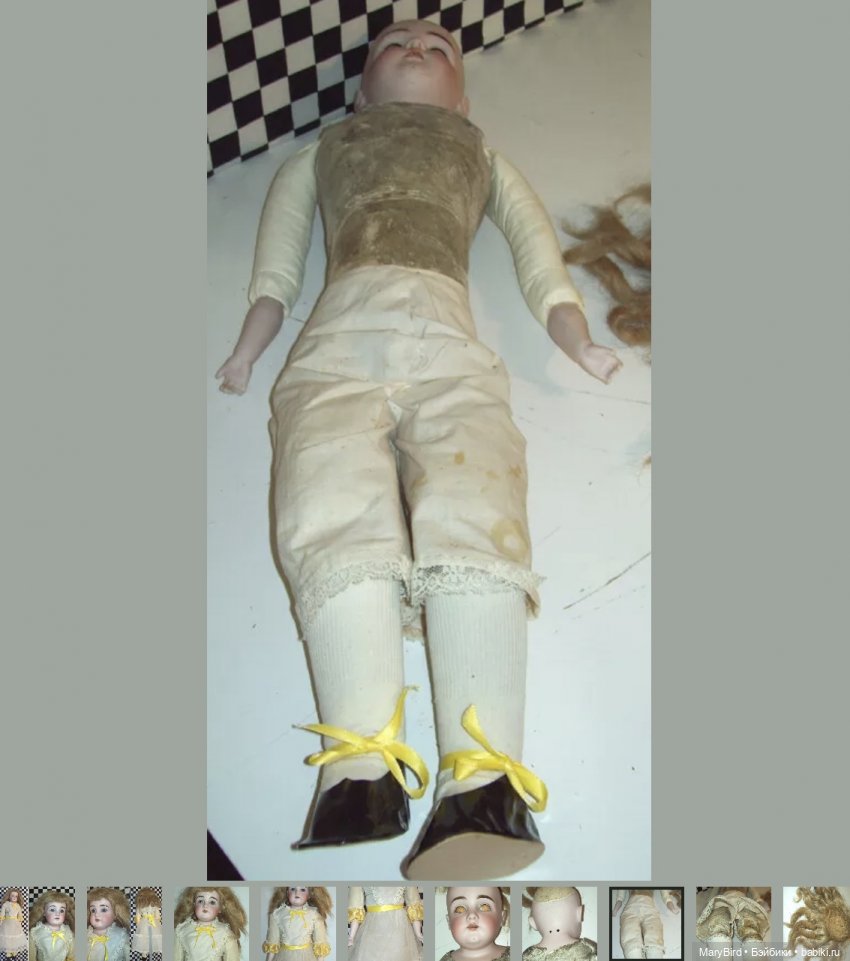 Что же касается фото этого лота. Я считаю, что их и правда маловато. Кукла показана не везде, не раздета целиком, нет возможности рассмотреть ее со всех сторон. И тут нужно понимать, что под одеждой может быть все, что угодно, хоть мышиное гнездо (и такое бывало). И покупатель имеет два варианта действий: 1. довольствоваться тем, что дал продавец и покупать на свой страх и риск, 2. написать продавцу и попросить провести дополнительный осмотр куклы и прислать дополнительные фото (или хотя бы словесное описание скрытых от глаз недостатков). Конечно, продавец может отказаться. И даже доп фото не всегда панацея и не уберегут Вас на 100% от неприятных сюрпризов. Но все же их наличие существенно снижает такую вероятность. Обычно, если продавец не идет на контакт, не отвечает на мои вопросы и не предоставляет доп. материалы, я просто не покупаю. Иду туда, где или материалов достаточно, или продавец дружелюбен и настроен на диалог. В любом случае, только Вам решать, достаточно ли Вы знаете о предмете, чтобы выложить за него деньги.